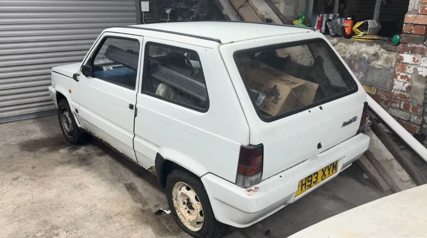 La genesi di questo progetto di restauro è una vera e propria odissea. Acquistata a metà prezzo dopo che la leva del cambio aveva deciso di lasciarci staccandosi completamente durante una rotonda nel centro di Londra, l’auto ha passato gli ultimi cinque anni a fungere da costoso capanno per gli attrezzi nel giardino dei genitori del proprietario. La condizione estetica attuale è evidentemente spaventosa, anche se ha ancora lo stesso fascino della Panda bianca scintillante di un tempo.