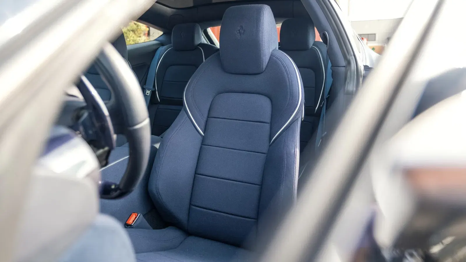 L’eleganza, si sa, è spesso discreta, e questa Ferrari FF lo conferma con la rara livrea “Nuovo Blu”, una tinta che avvolge la carrozzeria e si insinua fin dentro l’abitacolo. Ma è una volta aperte le portiere che il collezionista medio rischia il tracollo. Al posto della classica pelle che profuma di lusso tradizionale, troviamo sedili in tessuto. Una scelta quasi “eversiva” nell’abitacolo di una supercar moderna, declinata in un blu profondo con piping bianco e l’immancabile Cavallino ricamato. Il tocco di modernità? Inserti in fibra di carbonio blu, perché anche se ami il tessuto, resti pur sempre seduto sopra un mostro tecnologico.