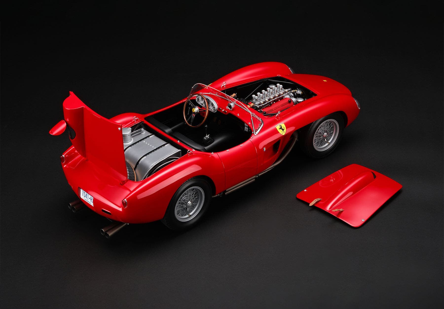 Per raggiungerlo, le maestranze di Amalgam Collection hanno potuto giovarsi di una minuziosa scansione del veicolo reale, in tutti i suoi dettagli visibili (anche sotto i cofani), per garantire una rappresentazione autentica. La veste estetica è leggermente diversa da quella degli esemplari più noti della Ferrari 250 Testa Rossa. Ci sono, infatti, delle piccole specifiche particolari, introdotte nel corpo per assecondare al meglio la partecipazione di Olivier Gendebien e Phil Hill alla 24 Ore di Le Mans del 1958.