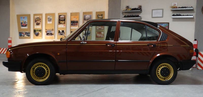 Questa edizione limitata, lanciata nel 1980 in concomitanza con la terza serie del modello, rappresenta un curioso “esperimento” commerciale in cui il Biscione tentò di scambiare la tuta da meccanico con un abito da sera. Esteticamente, l’auto era un inno al lusso dell’epoca. Carrozzeria color bronzo metallizzato che faceva un po’ a pugni con la verniciatura nera del tetto, il tutto condito dal simbolo della maison orgogliosamente esposto sulle fiancate.