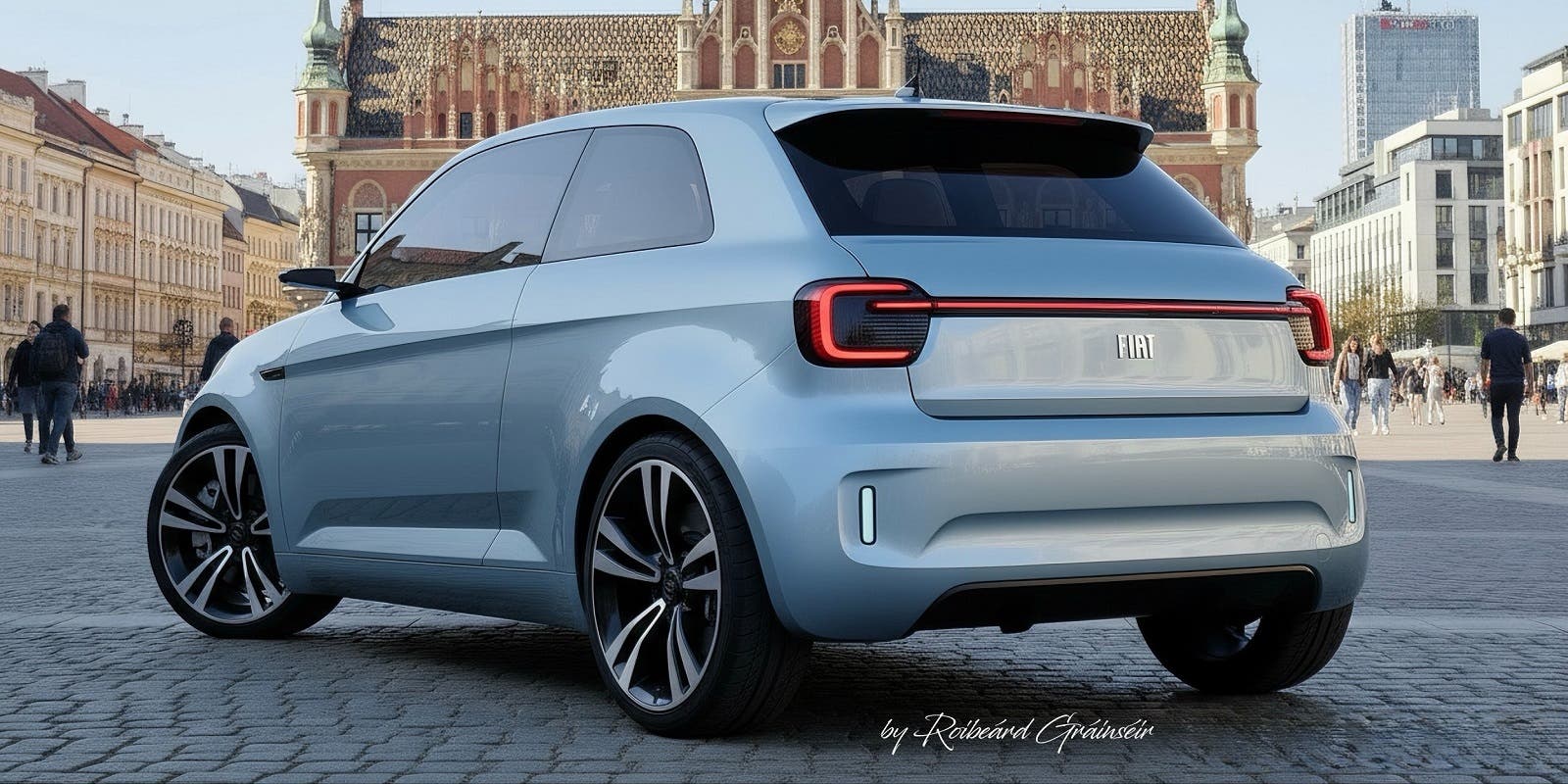 Il posteriore riprende lo stile minimal del frontale, con una barra luminosa a LED che unisce i fanali, portellone liscio e paraurti scolpito. Nel complesso, il render di Roibeárd Gráinséir propone una city car elettrica dal carattere rétro-futuristico, elegante e credibile come possibile modello di produzione. Chissà se un domani come altri mitici modelli di Fiat, la casa torinese non decida di rispolverare anche una nuova Fiat 126. Al momento però i piani del marchio italiano di Stellantis sembrano altri. Siamo infatti in attesa del debuttO di due nuovi SUV: la nuova Panda Fastback e a seguire della Giga Panda.