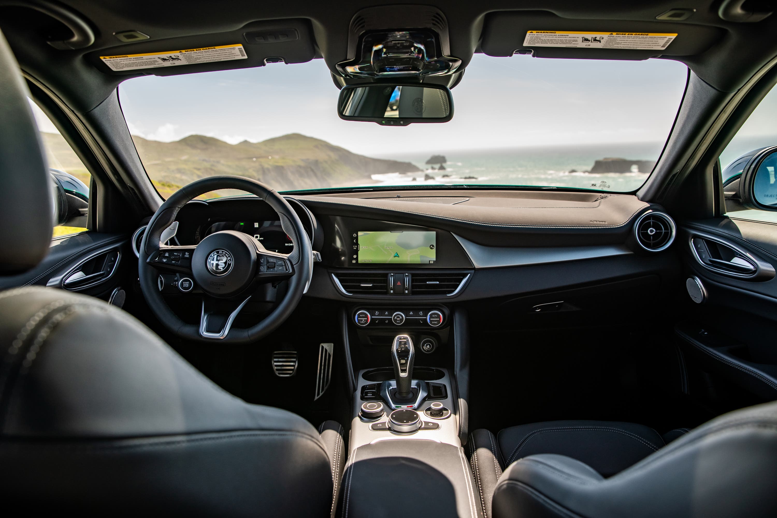 La dinamica di guida è valorizzata dalla trazione integrale Q4 di serie, dai freni Brembo ad alte prestazioni e dall’albero di trasmissione in fibra di carbonio, soluzione tecnica che contribuisce a ridurre il peso e migliorare la reattività. Per chi desidera un tocco ancora più sportivo, sono disponibili le palette del cambio in alluminio montate sul piantone dello sterzo.