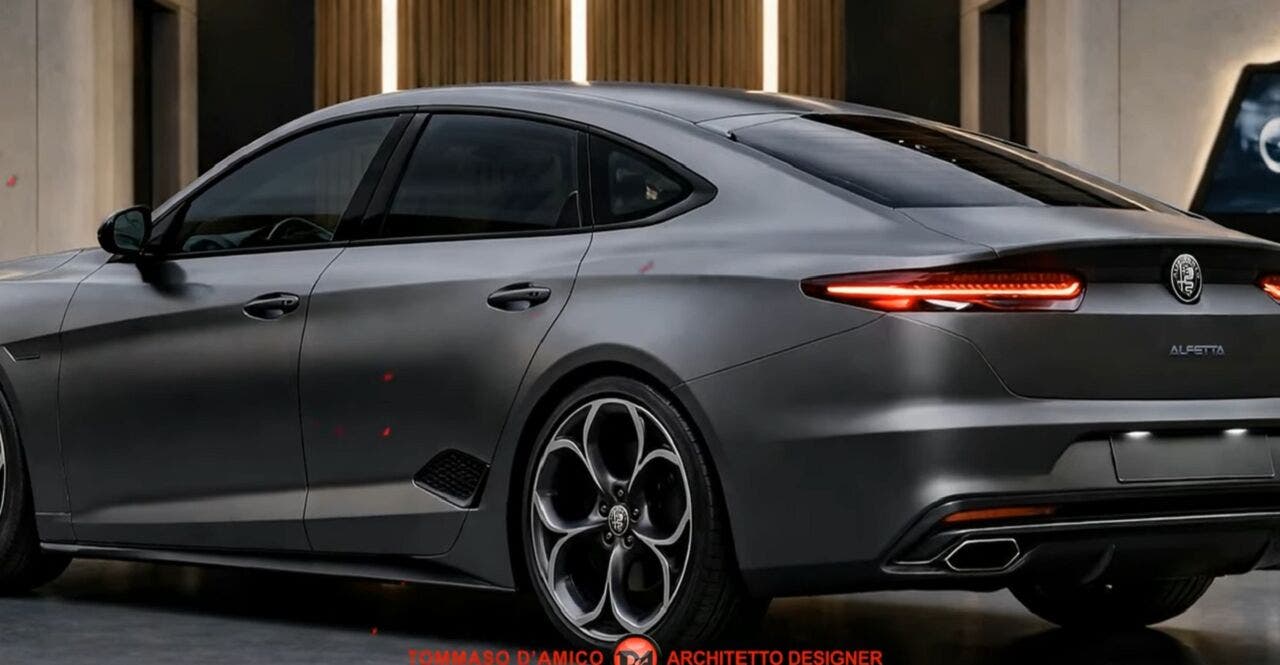 Nuova Alfa Romeo Alfetta Concept: un render la immagina con carrozzeria fastback slanciata e muscolare