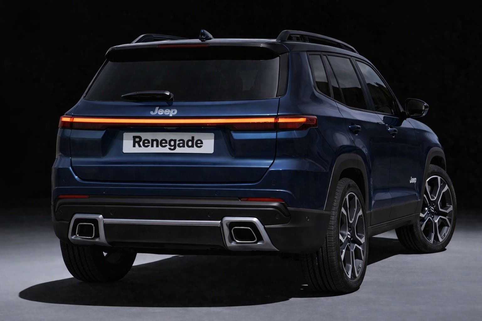 Qui vi mostriamo uno dei tanti render apparsi sul web ad immaginare come sarà esteticamente parlando la nuova Jeep Renegade. La vista anteriore mostra una Renegade reinterpretata in chiave più moderna e muscolosa. Il frontale è dominato dalla classica griglia a sette feritoie, ora più verticale e rifinita con elementi scuri che ne accentuano la presenza. I fari sono estremamente sottili, sviluppati in orizzontale, con una firma luminosa a LED affilata che conferisce uno sguardo più tecnico e contemporaneo, in linea con i modelli Jeep di segmento superiore.