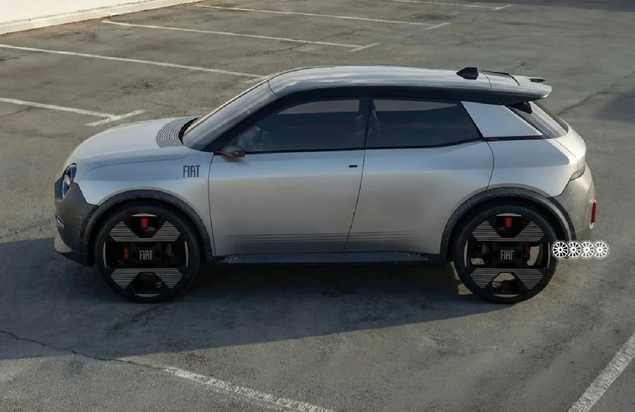Il progetto digitale riprende quell’eredità stilistica e la rielabora in chiave minimalista. Il frontale è dominato da gruppi ottici circolari a LED, evidente richiamo alla prima serie, incastonati in una fascia scura che integra una sottile calandra orizzontale. Il logo Fiat, posizionato al centro, dialoga con una firma luminosa moderna che rafforza l’identità del modello.