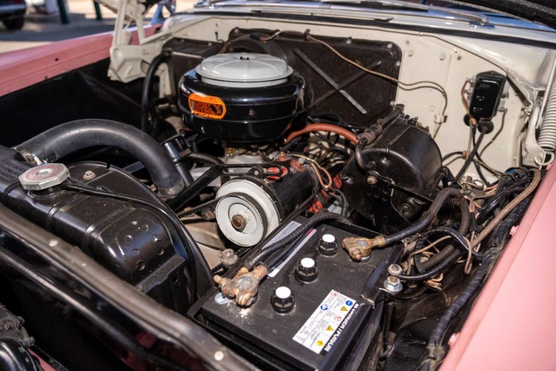 Quella destinata a passare di mano è una delle 3.302 vetture dello stesso tipo costruite nel suo anno di nascita. Ad identificarla, in modo inequivocabile, ci pensa il numero di telaio 34845128. Le sue tipiche forme statunitensi accolgono un motore chiaramente legato alla filosofia costruttiva e ingegneristica della stessa area geografica.