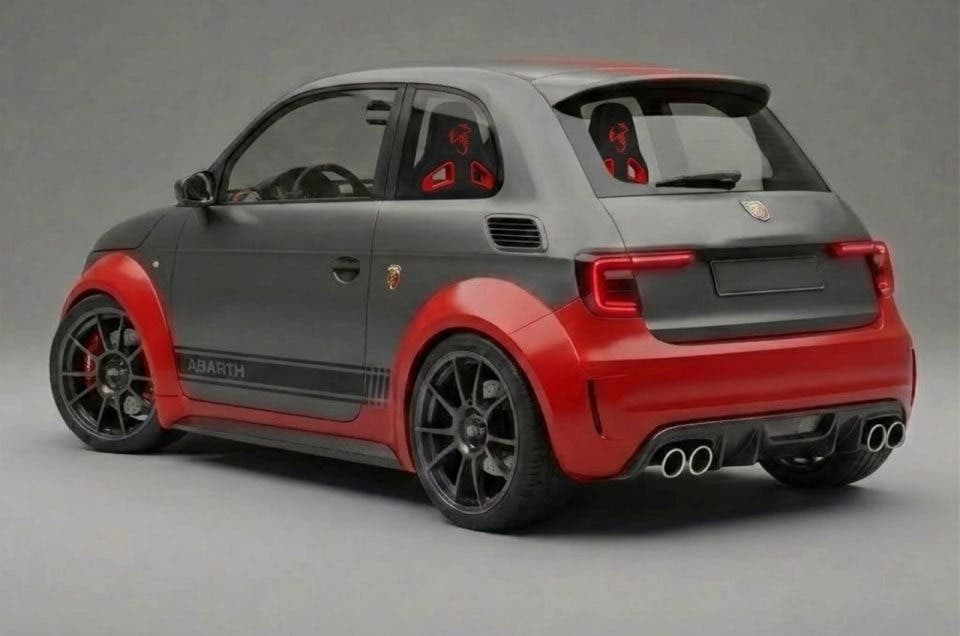 Il concept si declina anche in versioni dal carattere molto diverso. La variante base della Nuova Fiat 126 appare già più aggressiva grazie ai passaruota allargati, ma è soprattutto la versione Abarth a rubare la scena. Minigonne, alettone, diffusore con quattro scarichi, dettagli in carbonio, cerchi racing e interni con finiture rosse trasformano la piccola torinese in una sportiva estrema. Non manca neppure una variante Cross, pensata per un look più avventuroso, con protezioni in plastica, fari supplementari, pneumatici off-road e portapacchi sul tetto.