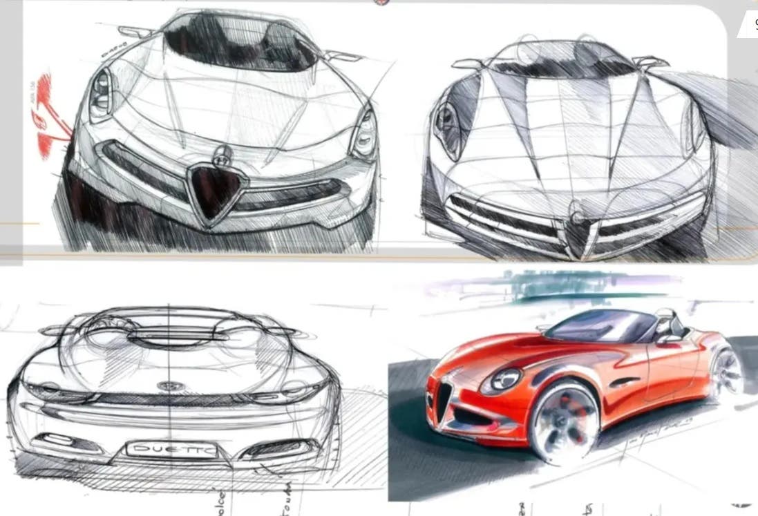 Naturalmente resta il fascino del “what if”, del progetto rimasto sulla carta e mai trasformato in realtà industriale. Ma i bozzetti pubblicati da Díaz mostrano con chiarezza che, già nel 2008, in Alfa Romeo si ragionava attorno a un’auto capace di interpretare in chiave moderna i valori storici del marchio: compattezza, sportività, bellezza meccanica e piacere di guida.