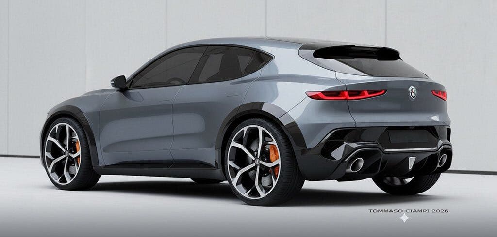 Il risultato è una vettura dal look deciso, moderno e molto personale. La carrozzeria appare compatta, ma con un’impostazione più muscolosa rispetto al passato. Il tetto scende verso il posteriore con una linea fluida, quasi da crossover-coupé, regalando alla silhouette un aspetto dinamico e slanciato. Il frontale, invece, richiama immediatamente il linguaggio stilistico Alfa Romeo: lo scudetto centrale domina la scena, mentre i fari sottili e aggressivi contribuiscono a creare uno sguardo affilato, quasi provocatorio.