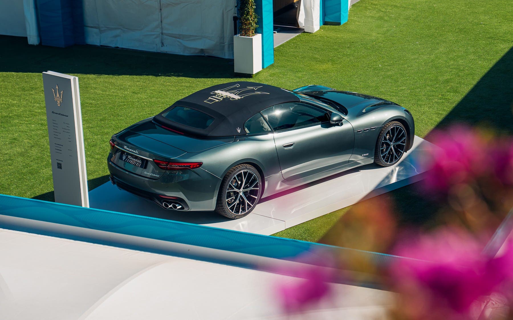 Il torneo monegasco è stato scelto come scenario ideale per mostrare, in anteprima mondiale, due creazioni uniche firmate “Fuoriserie“, programma aziendale che offre a tutti i clienti l’opportunità di trasformare la propria automobile in un esemplare su misura. Di sicuro interesse la presenza di una GranCabrio in Verde Royale con interni ICE, esposta al Commercial Village, che porta al debutto una novità assoluta nella storia del marchio: la prima capote completamente personalizzata. Realizzata in un intenso blu Maserati, questa copertura celebra i cento anni del “tridente” illustrandolo nella parte alta, con un raffinato gioco di lavorazioni che combinano intreccio e ricamo.