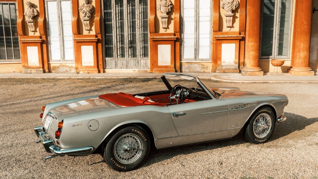 L’esemplare certificato è stato restaurato tra il 2023 e il 2026 proprio a Modena, con il supporto diretto di Maserati Classiche. Il lavoro ha riportato l’auto alla configurazione con cui si presentò nel 1959, rispettandone storia, materiali e dettagli. E i dettagli, qui, fanno davvero la differenza: carrozzeria argento, abitacolo in avorio e rosso, tappeti blu e finiture dorate. Sotto il cofano c’è il raffinato sei cilindri in linea da 3.485 cc, con 235 CV e cambio manuale ZF a quattro marce.