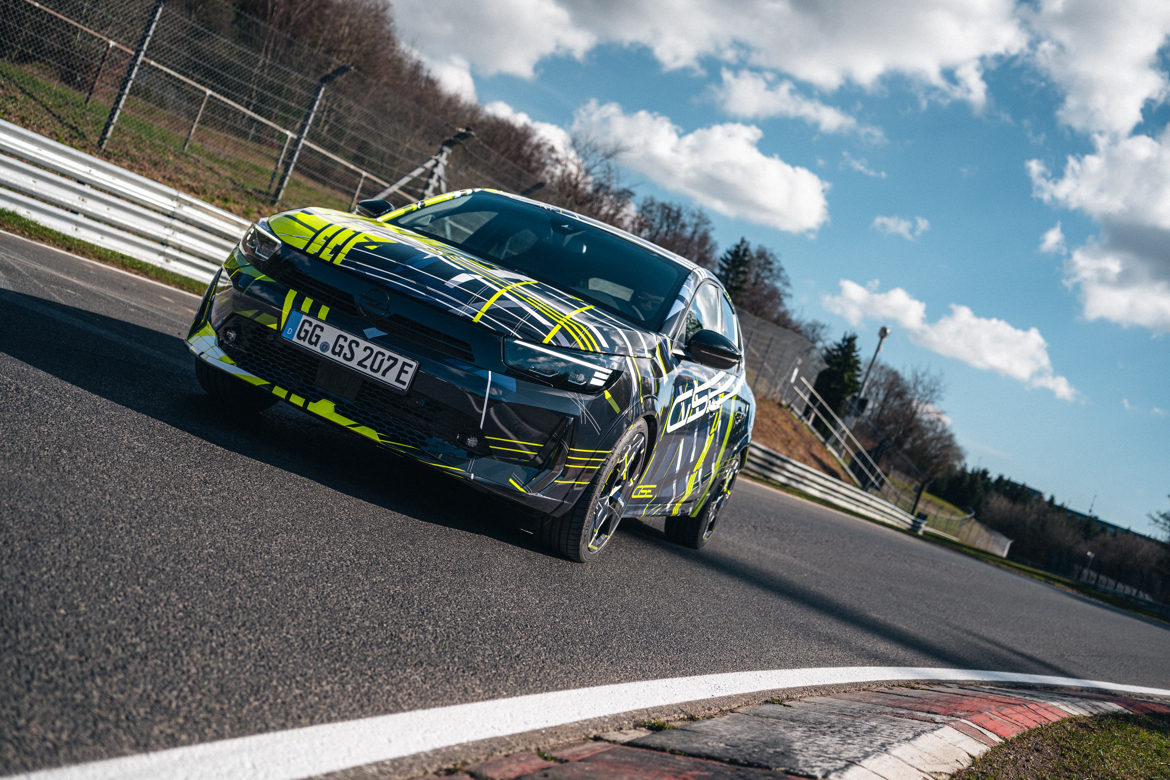 La casa automobilistica tedesca spiega le ragioni della decalcomanie a righe e a scacchi scelte per vestire i prototipi: un omaggio moderno alla sportiva Corsa A degli anni ’80. Gli appassionati del marchio lo avevano già intuito.