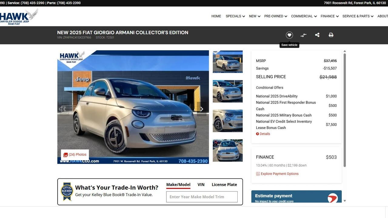 Non sorprende quindi che negli showroom siano iniziati forti ribassi per cercare di smaltire le giacenze. In diversi casi, i concessionari stanno proponendo sconti molto pesanti, che arrivano fino a 15 mila dollari. Uno degli esempi più evidenti riguarda una 500e INSPI(RED) del 2024, proposta in Virginia a poco più di 19 mila dollari, contro un prezzo di listino iniziale superiore ai 34 mila. Anche la più recente Armani Edition del 2025 viene offerta in alcuni casi sotto i 22 mila dollari, con una riduzione di oltre 15 mila dollari rispetto al prezzo originale.