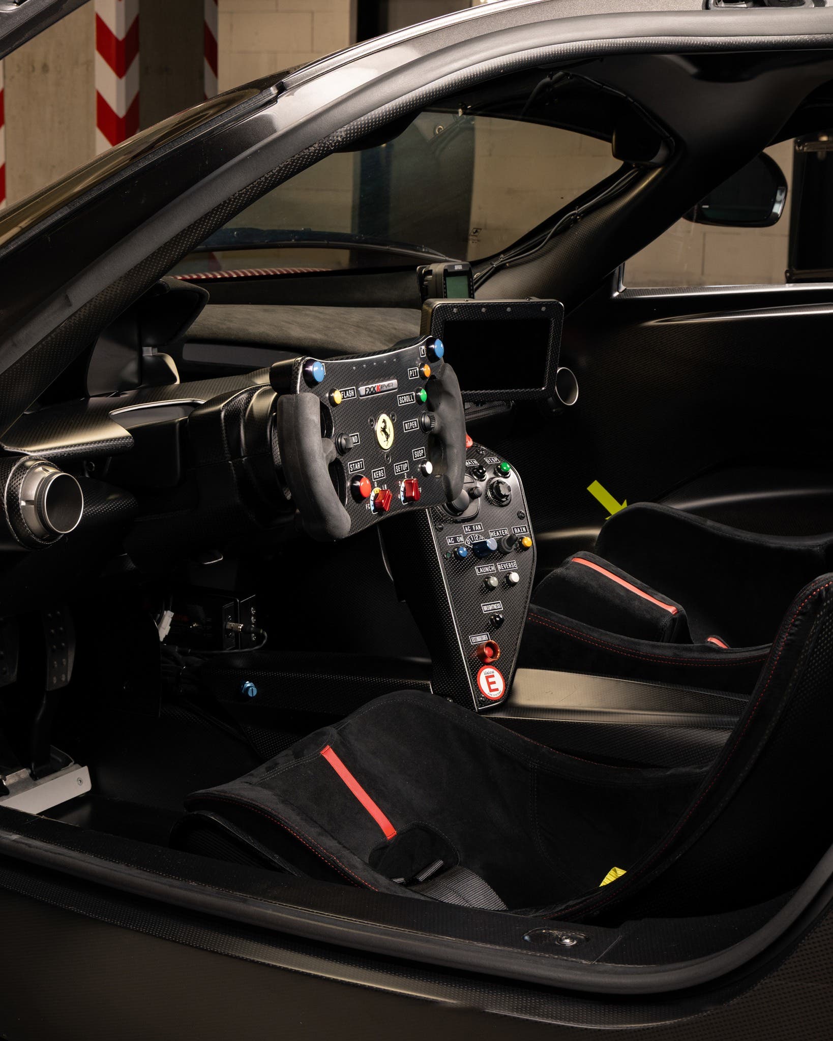 L’esemplare destinato a passare di mano appartiene a una stirpe di auto-laboratorio, pensate esclusivamente per l’uso in pista. Qui, periodicamente, queste “belve” ruotate deliziano un ristretto gruppo di fortunati clienti-collaudatori del “cavallino rampante“, assistiti con tutti i riguardi dai tecnici e dai meccanici della casa madre.
