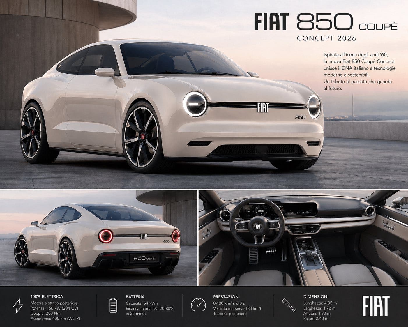 Linee pulite, anima sportiva e DNA italiano: la nuova Fiat 850 Coupé immaginata da Officina Video riporta al centro della scena una delle vetture più evocative della storia della casa torinese. Va precisato subito che non si tratta di un modello annunciato da Fiat, ma di un render realizzato con intelligenza artificiale e pubblicato su Facebook dalla pagina Officina Video. Una visione digitale, quindi, ma capace di accendere la fantasia degli appassionati.