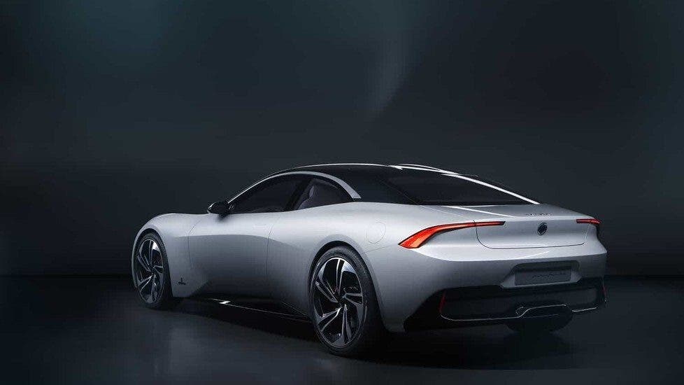 La concept rispetta le proporzioni della vettura da cui prende spunto ma l’esterno è del tutto diverso. Trattandosi infatti di un coupé a due porte, le fiancate sono state rifatte completamente. L’auto esprime la sua personalità con linee dall’andamento più fluido e una silhouette più dolce ma nello stesso tempo anche più decisa. Un tettuccio nero a contrasto mette in risalto la tinta color grigio chiaro, mentre i dettagli sono in nero lucido o grigio canna di fucile. La parte anteriore è forse la zona più sportiva dell’auto con una calandra con stecche simmetriche e fari Led dalla forma molto particolare. La zona posteriore invece sembra essere più elegante e sinuosa grazie alla presenza di due luci posteriori a Led a forma di boomerang. Per quanto riguarda invece Grove Hydrogen Automotive Company Limited, si tratta di una vettura realizzata in fibra di carbonio, con power unit elettrica alimentata a fuel cell a idrogeno. Pininfarina e Grove sono ottimisti sul fatto di poter produrre realmente in futuro questa vettura.