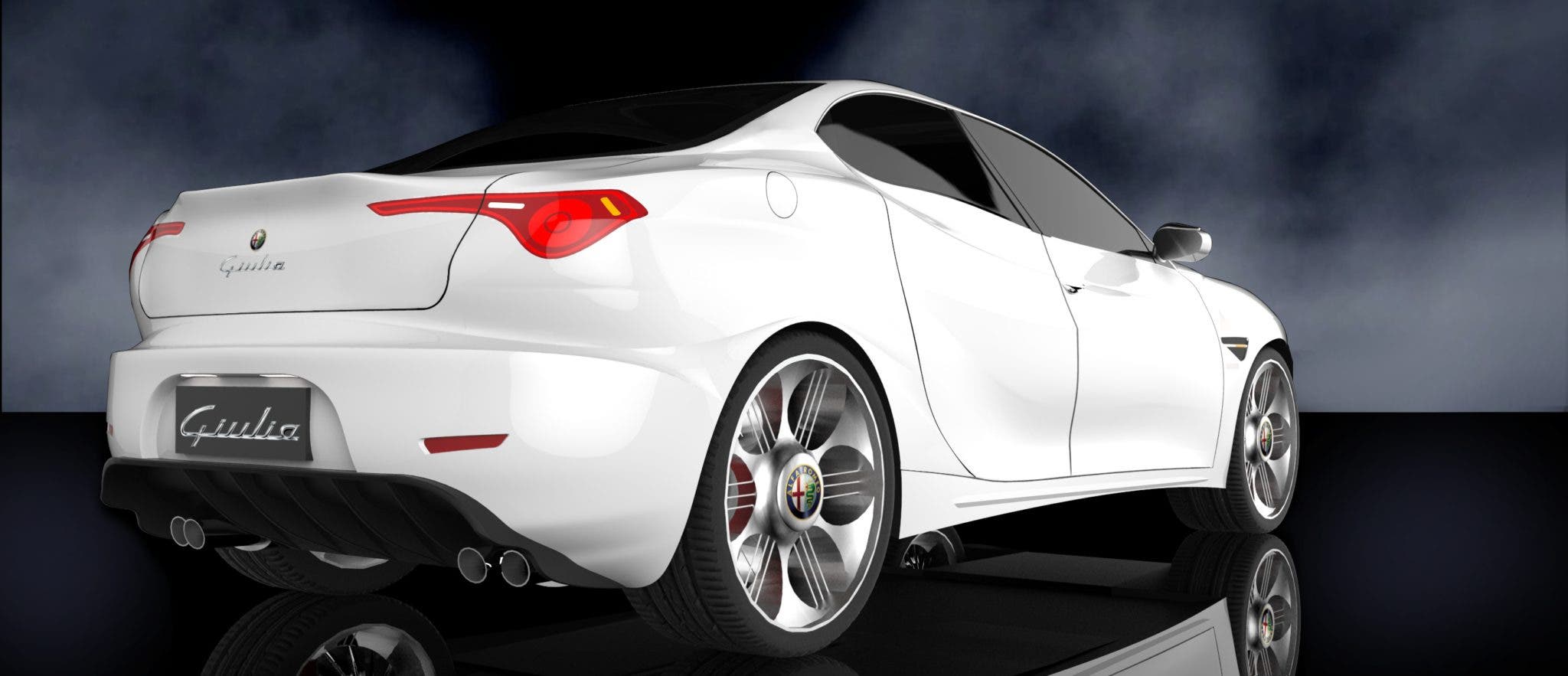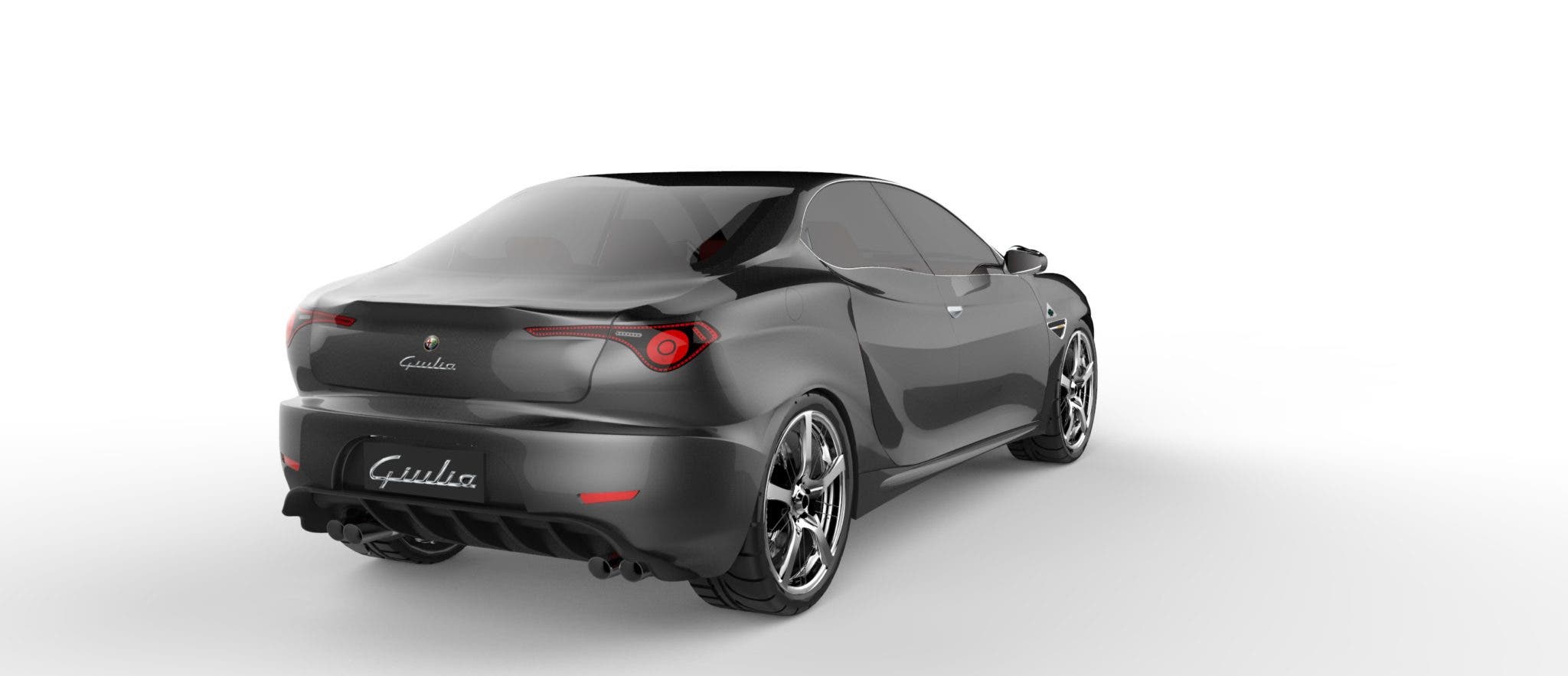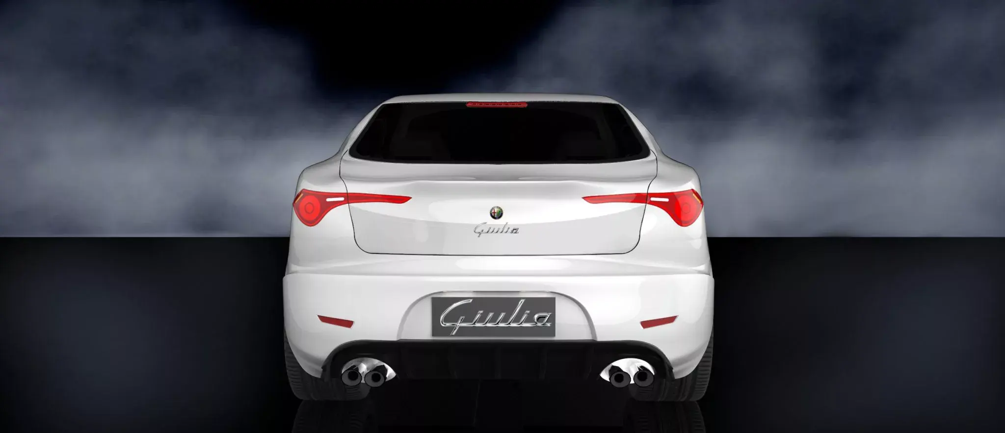 Questi particolari render dell’Alfa Romeo Giulia mostrano una parte posteriore molto elegante con linee semplici ma definite che vanno ad esaltare il corpo allungato tipico della carrozzeria a quattro porte della futura segmento D del marchio italiano. I gruppi ottici posteriori rappresentano, invece, un’evoluzione, anche in questo caso in chiave decisamente premium, della Giulietta. Sul portello posteriore troviamo, invece, il nome Giulia mentre in basso viene proposto uno schema a quattro scarichi, divisi in due coppie, che potrebbe essere una soluzione adottata dalla futura Alfa Romeo Giulia Quadrifoglio Verde.