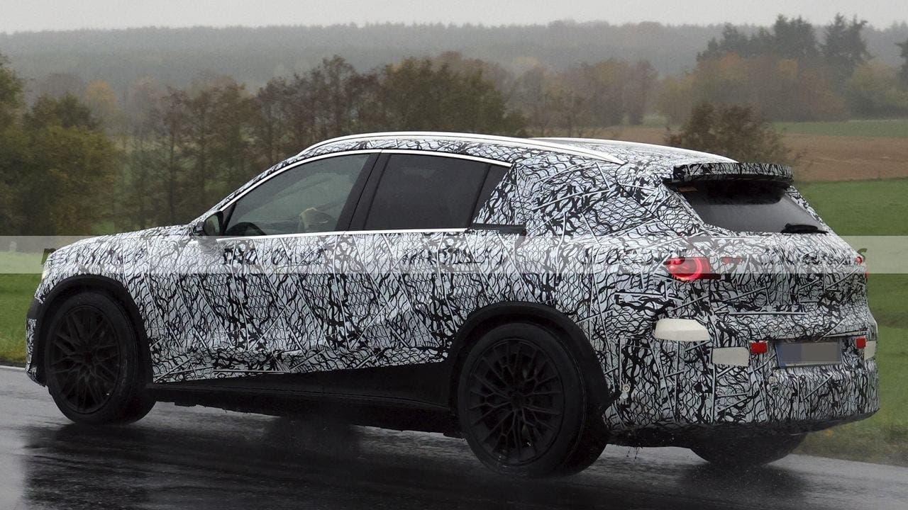 Ciò che è chiaramente visibile è la sua “cima”. La GLC AMG elettrica, infatti, avrà uno spoiler estraibile elettricamente sul portellone. Un sistema aerodinamico attivo mai visto prima in questa posizione, che non solo si adatta automaticamente alla velocità ma presenta addirittura una posizione unica per l’aerofreno.