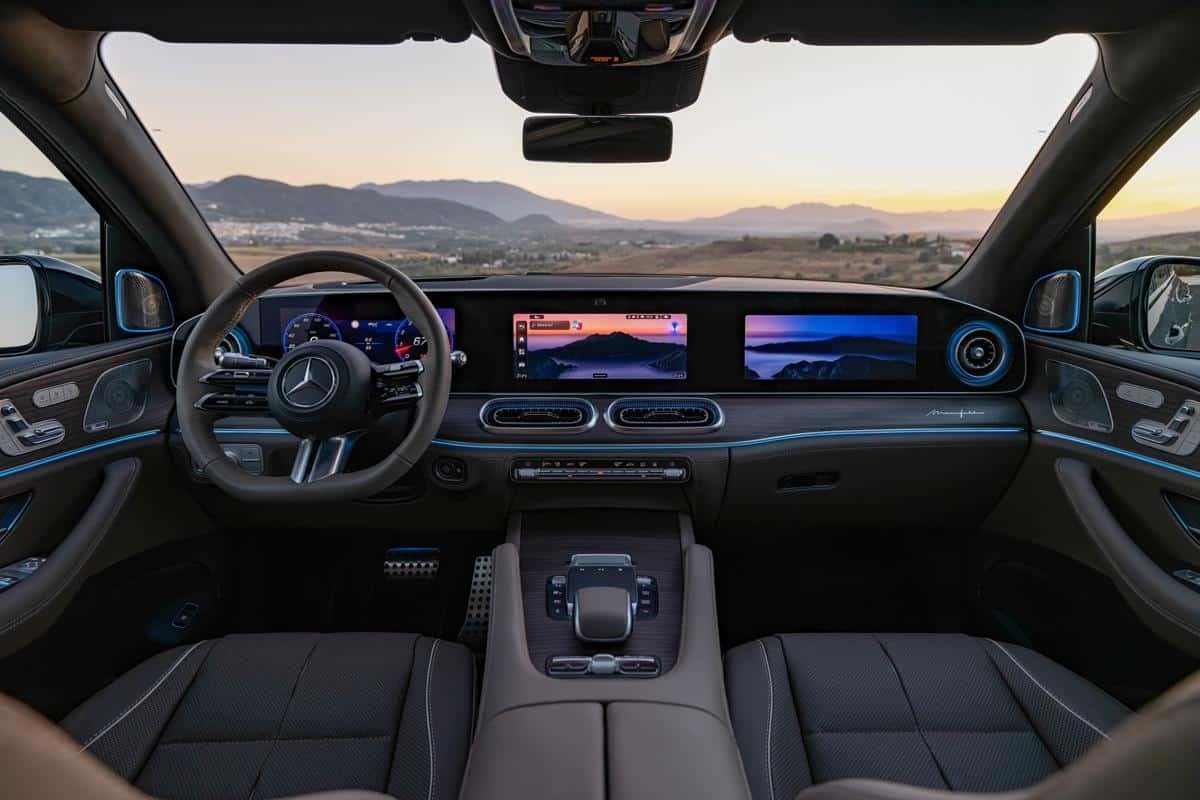 Dentro, la GLS 2026 trasforma il concetto di abitacolo in qualcosa che somiglia più a un ufficio mobile di rappresentanza. Il sistema MBUX Superscreen porta tre display touchscreen da 12,3 pollici ciascuno, strumentazione, infotainment, intrattenimento per il passeggero, governati dal nuovo software MB.OS con aggiornamenti over-the-air.