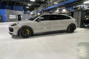 A completare il look, dettagli in fibra di carbonio per le appendici aerodinamiche e componenti del pacchetto Weissach. I cerchi in magnesio portano il logo TAG Heuer, mentre le pinze dei freni in ceramica sono verniciate di nero lucido.