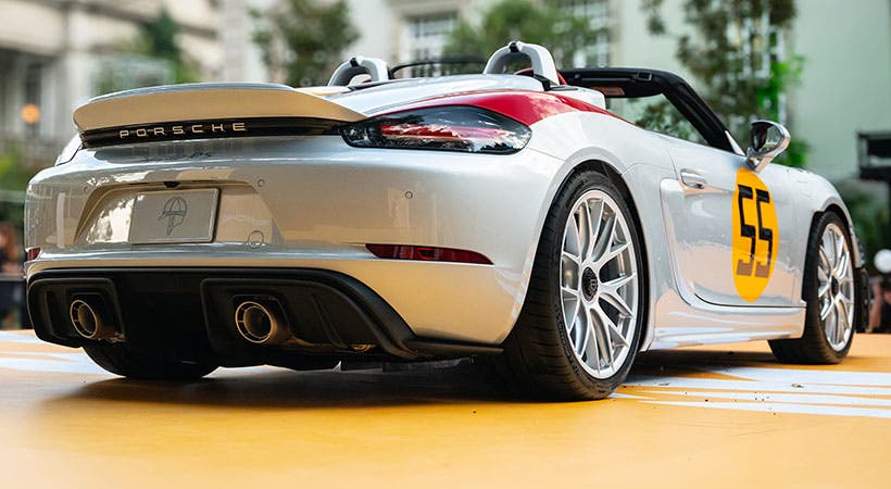 In quell’occasione, il pilota tedesco Hans Herrmann, a bordo di una 550 Spyder, antenata della Boxster Spyder, conquistò il terzo gradino del podio, primeggiando nella sua categoria, quella relativa ai motori fino a 1.500 cc. In omaggio a quella storica impresa, sulla fiancata della Boxster Spyder compare ora il numero di gara di Herrmann, dipinto in giallo sulla carrozzeria argentata, proprio come quella dell’auto da corsa originale.