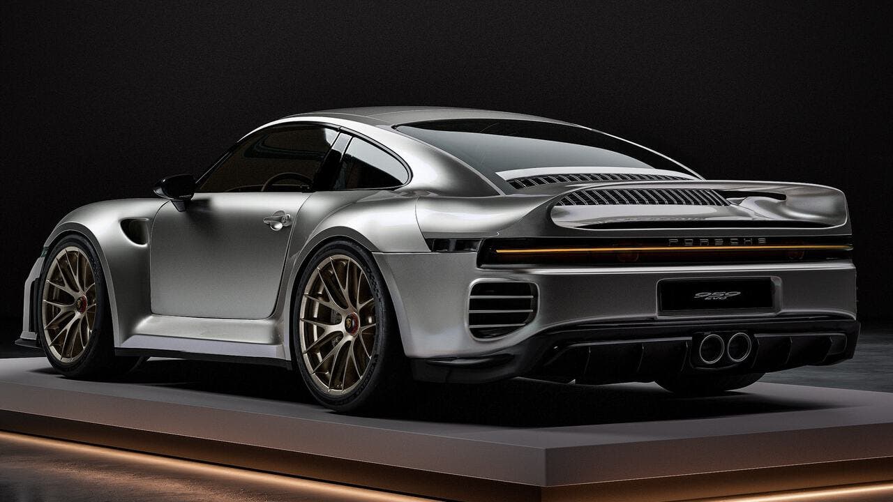 Il risultato è uno studio gran turismo di rara eleganza. Scarico centrale GT3 più compatto, barra dei fanali posteriori a LED che mantiene tutta l’ampiezza del modello storico, frontale più aggressivo con prese d’aria maggiorate. I piccoli dettagli dorati sul posteriore restano lì a fare da ponte tra passato e presente, mentre i cerchi Weissach e qualche elemento classico regalano un look sobrio ma cattivo.