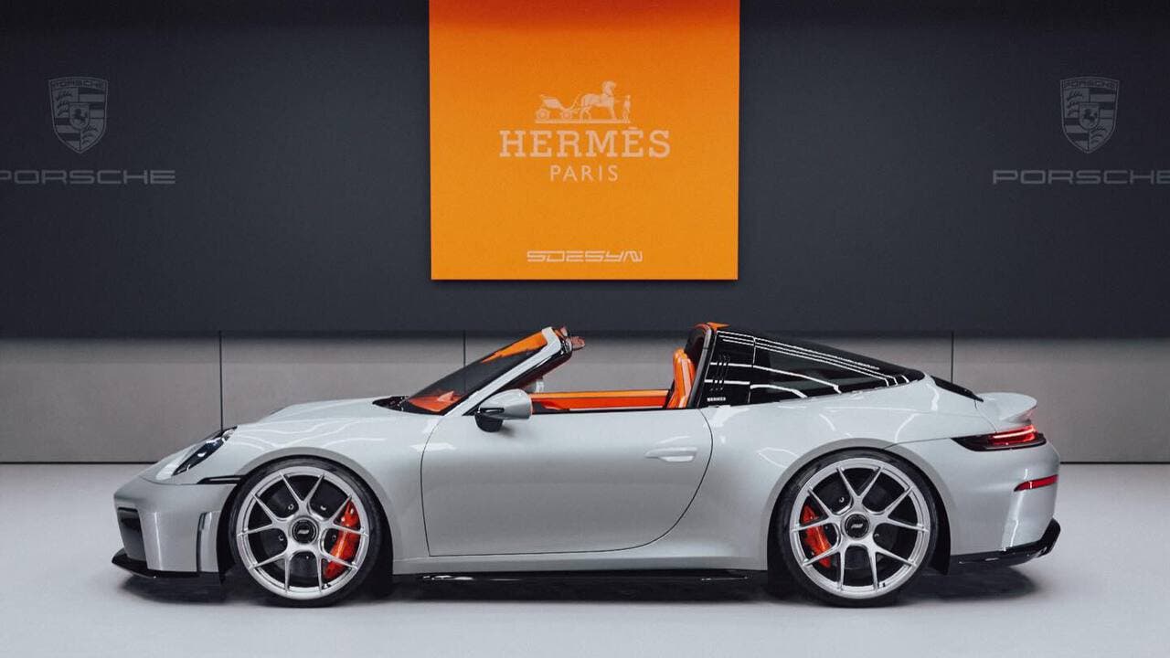 Da un luogo completamente diverso che arriva la notizia più interessante della settimana. Shashank Das, pixel-artist conosciuto online come sdesyn, ha deciso di fare quello che Porsche probabilmente non farà mai: immaginare una Porsche 911 Targa GTS Hermes Edition. Carrozzeria argentata, sfumature arancioni che invadono l’abitacolo e sbucano fuori attraverso enormi pinze freno.
