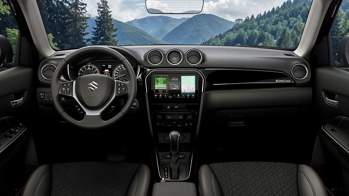 L’intervento estetico si concentra sull’introduzione di dettagli in nero lucido che coinvolgono cerchi in lega da 17 pollici, calotte degli specchietti, maniglie delle portiere e barre sul tetto, elementi che su entrambi i modelli spostano l’immagine verso un registro più dinamico. Sulla Vitara Xplore si aggiunge un inserto nero sul portellone che accentua ulteriormente la differenziazione rispetto all’allestimento di partenza. All’interno, le finiture scure si estendono alla leva del cambio, ai pannelli porta e, nel caso della Vitara, anche alla fascia della plancia, con cuciture arancioni su sedili, pannelli, cuffia del cambio e volante in pelle come elemento di contrasto.