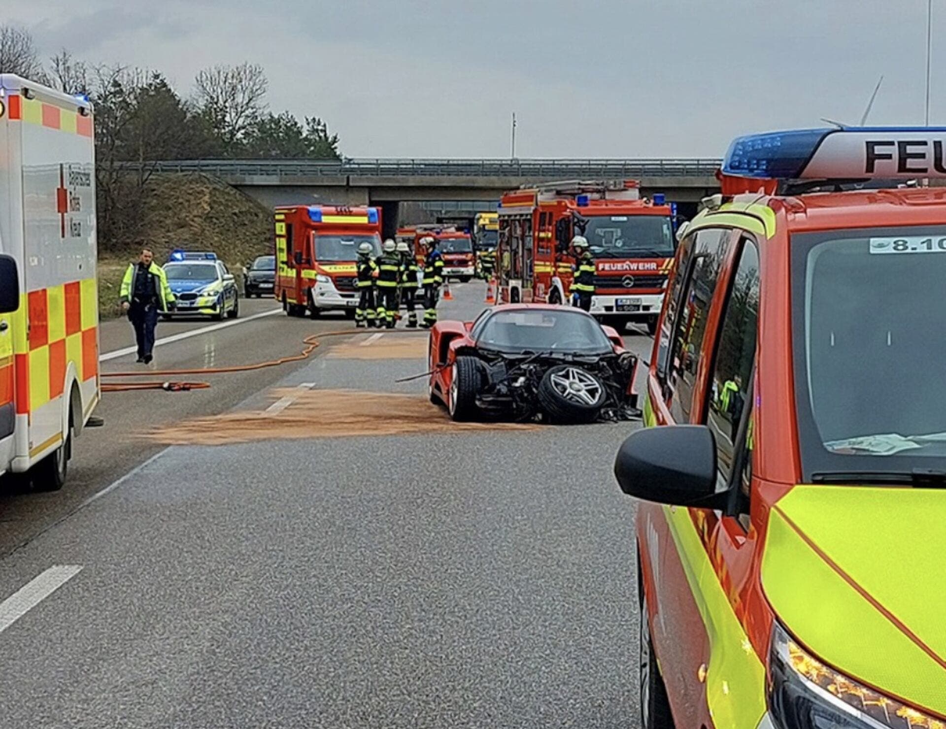 The Munich fire brigade posted two photos of the Ferrari Enzo on their Facebook profile after the crash. The pictures show that the damage was concentrated on the front part of the car, heavily damaged but perfectly repairable, even though the restoration costs will not be affordable.