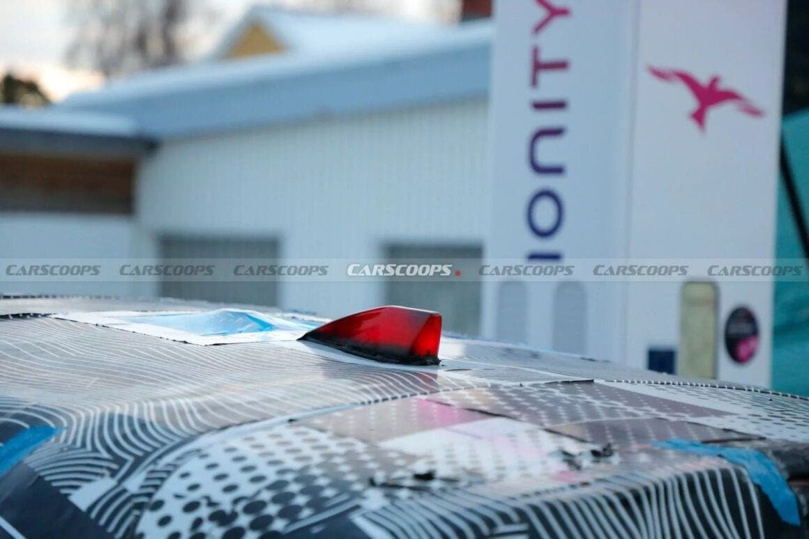 The new photos reveal that this prototype features 24-inch wheels at the rear and 23-inch wheels at the front. Additionally, an interesting detail was noticed: the shark fin antenna mounted on the roof occasionally flashes green or red. It’s speculated, though this is just a hypothesis, that it could be some sort of charge status indicator. We can also see that the test mule continues to feature various fake elements such as mock exhaust pipes. Furthermore, the images show the rear hatch open, providing a glimpse of the cargo area.