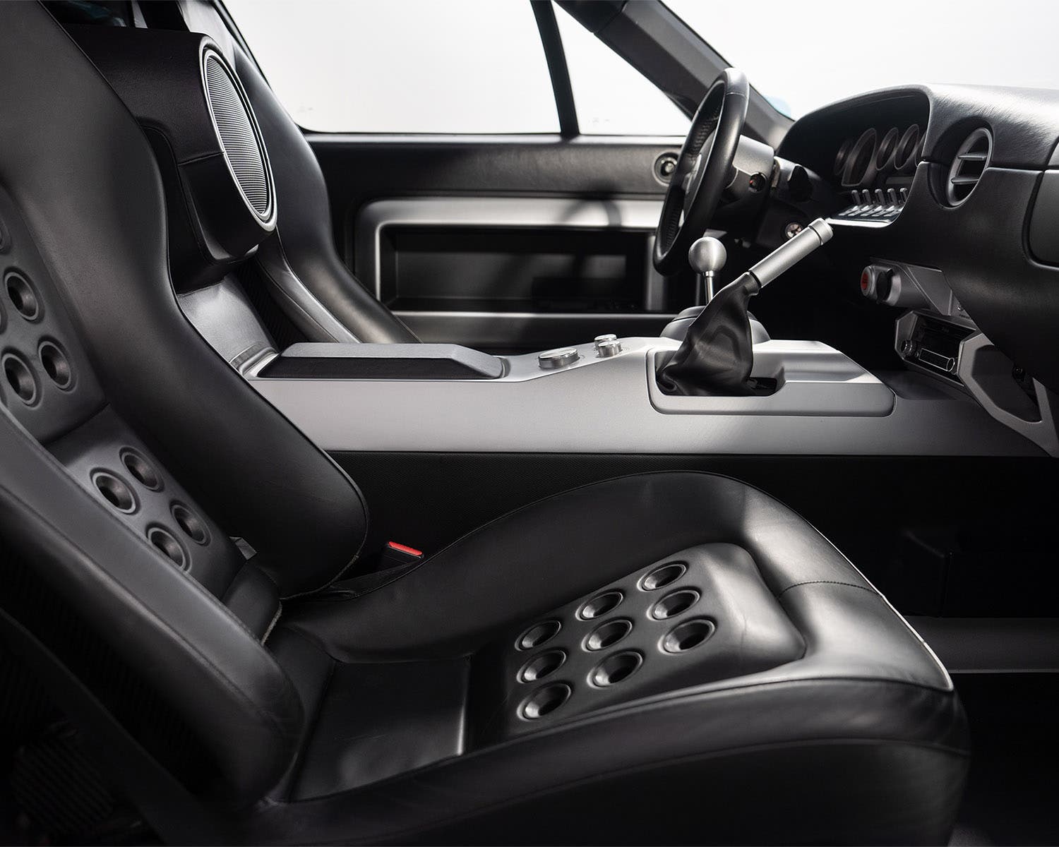 Dressed in the unmistakable Gulf blue and orange livery, this GT instantly evokes the spirit of the GT40 Mk I that conquered Le Mans in 1968 and 1969. Only 343 Heritage Editions were built in 2006, each featuring unique racing stripes, white roundels, and Heritage badging that set it apart from the standard GT. Inside, the cabin is pure driver-centric minimalism: black leather seats with embossed GT logos, a short-throw six-speed manual gearbox, and a cockpit that values analog thrill over digital distraction.