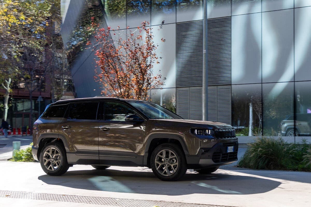 Inside, Jeep redesigned the cabin to maximize comfort and practicality. Rear legroom increases by 20 mm, while cargo capacity reaches 550 liters, an improvement of 45 liters. The front storage compartments now offer a total of 34 liters of space. The layout focuses on ergonomics, featuring a rotary gear selector, electronic parking brake, and an intuitive rubberized Selec-Terrain switch.