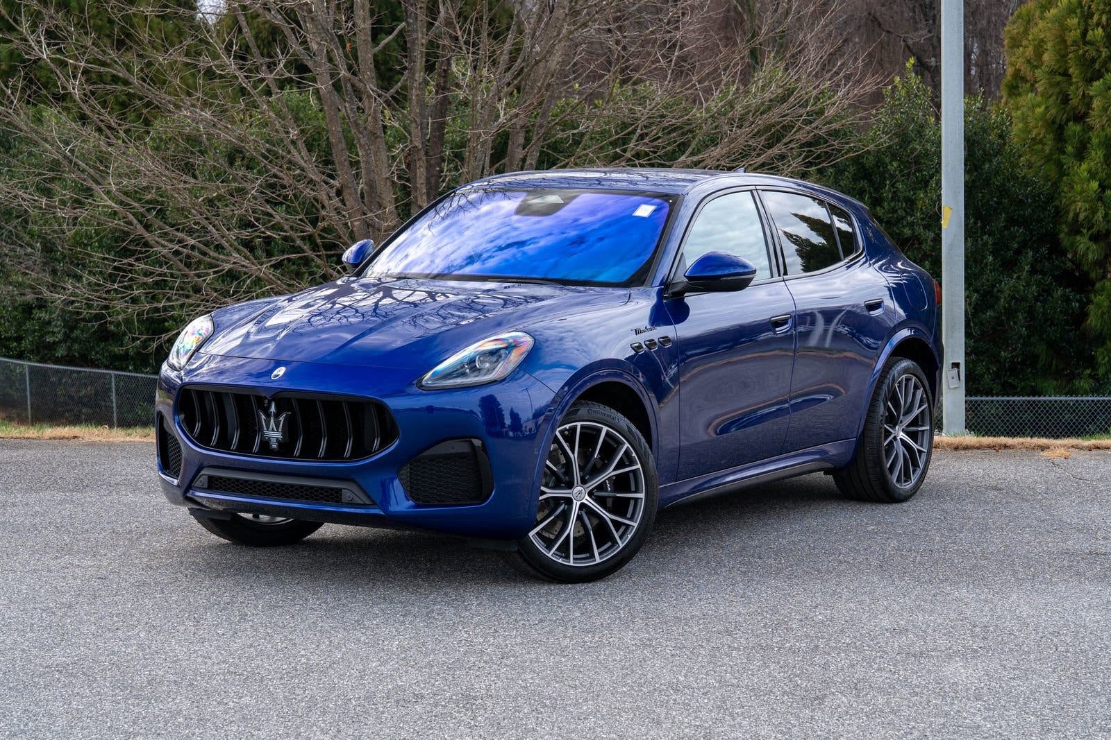 Inside, premium leather upholstery, 14-way adjustable seats, open-pore Radica wood trim, multicolor ambient lighting, a 12.3-inch digital instrument cluster, and the Maserati Intelligent Assistant display system with dual 12-inch and 8.8-inch screens featuring navigation, Apple CarPlay, and Android Auto. Audiophiles get a 14-speaker, 860-watt Sonus Faber sound system.