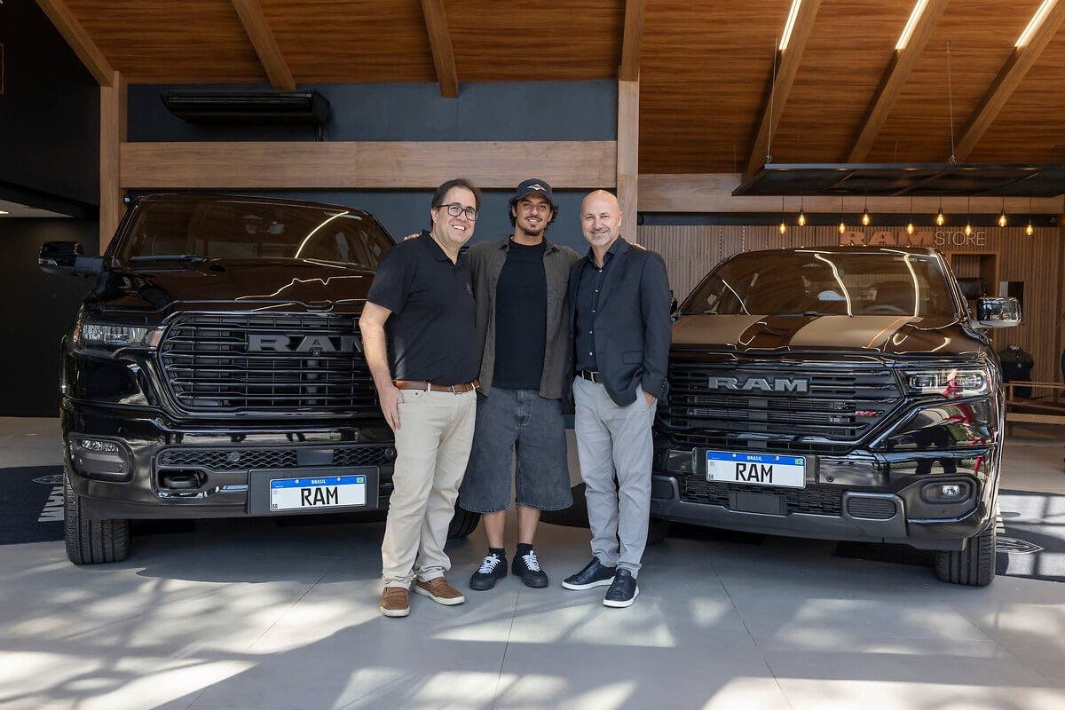 Ram, the sales leader in the large pickup segment in Brazil, delivered two new pickups to three-time world surfing champion and Olympic medalist Gabriel Medina, a partner of the mountain sheep brand. The athlete received a new 1500 Laramie Night Edition and Rampage R/T from the hands of Juliano Rossi, Ram’s vice president for South America, and Herlander Zola, vice president of business operations for Stellantis Brazil. During the ceremony, held at Ram House in São Paulo, Medina also presented the executives with autographed surfboards.